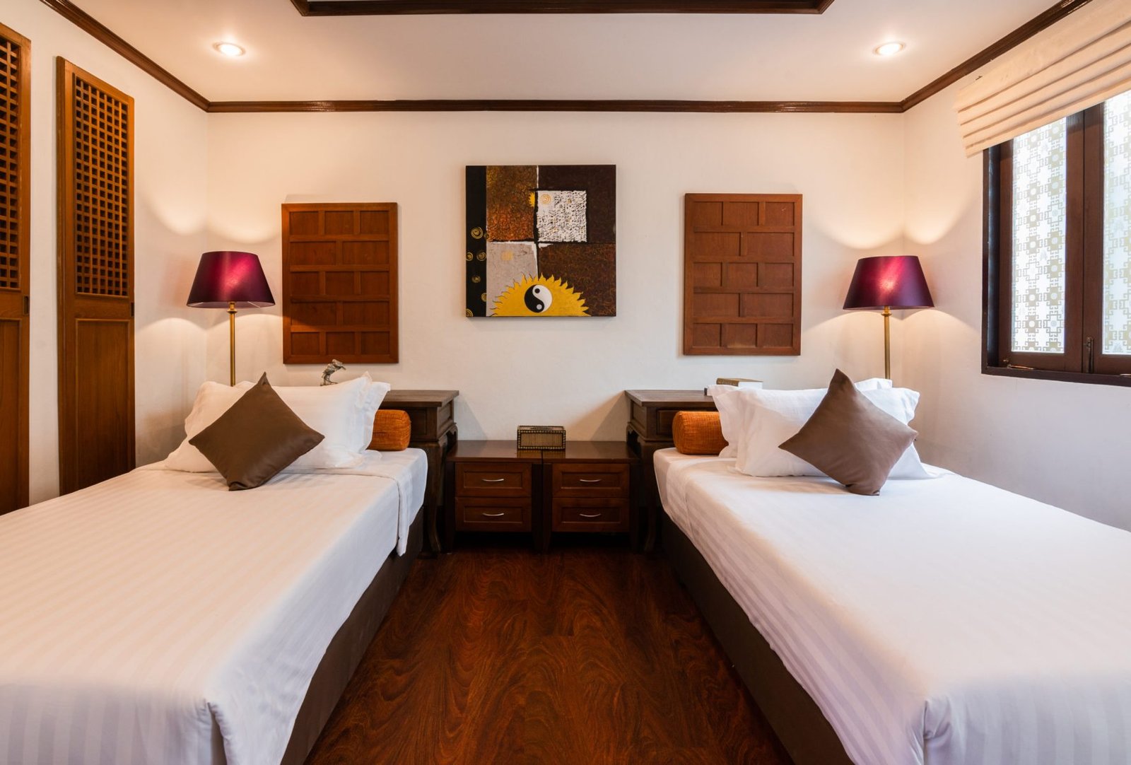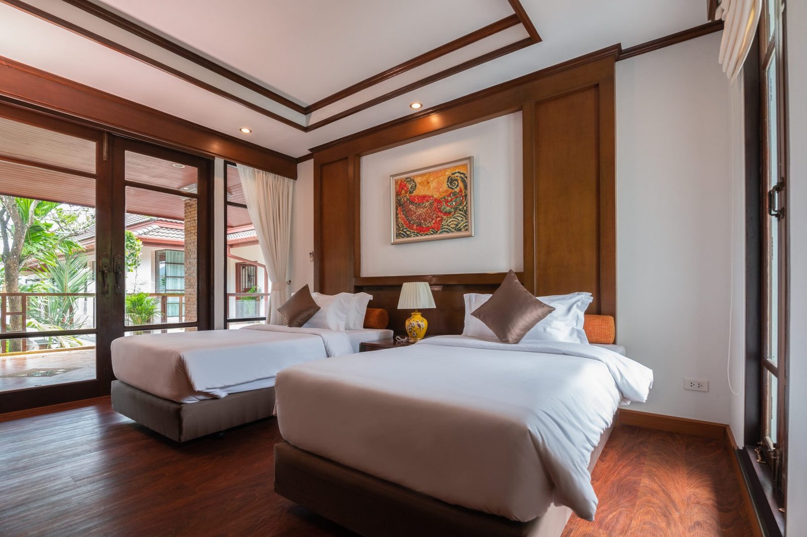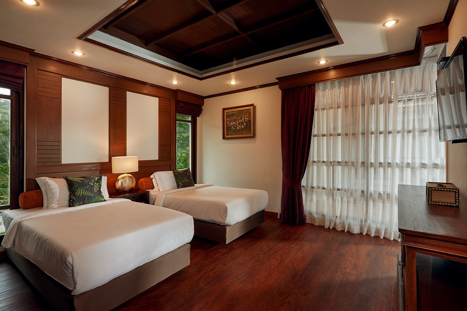 Stylish, harmonious, airy, and compact. Standard guest rooms offer exquisite Thai designs with warm color pallets, providing a true sense of luxury in this blissful haven. Due to the open space, a tender ambiance prevails. All luxury design details are in place perfectly.